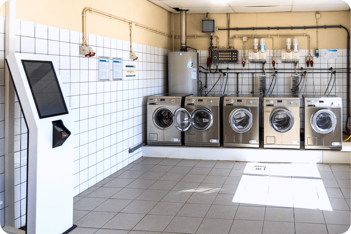 Betaalterminals kunnen op verschillende plekken worden ingezet; zoals bijvoorbeeld de wasserette. Geen gedoe meer met muntjes of pas tegoeden maar snel en eenvoudig betalen met je pinpas of creditcard.